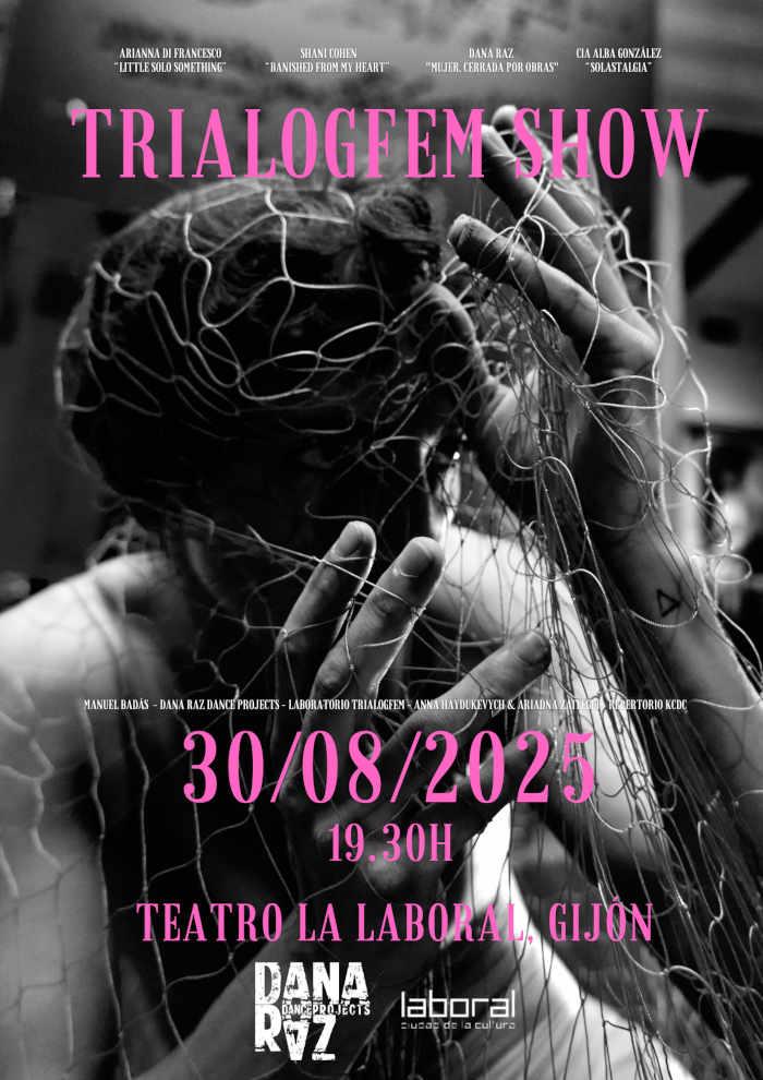 Trialogfem Show es el espectáculo que pone en escena a los artistas invitados y de la propia compañía produciendo el certamen homónimo que se celebra en Gijón y que durante siete días abandera la danza contemporánea de acento femenino, Trialogfem. En cuanto a las piezas propias de cada coreógrafa, se exhiben ‘Sloastagia’, de Alba González y Ana Erdozain; ‘This 2 Shall Pass Arianna di Francesco y Banished from my heart’, de Shani Cohen, y el estreno de la última pieza creada por Dana Raz especialmente para el proyecto, ‘Trialogfem Mujer. Cerrada por obras’. Más información aquí.