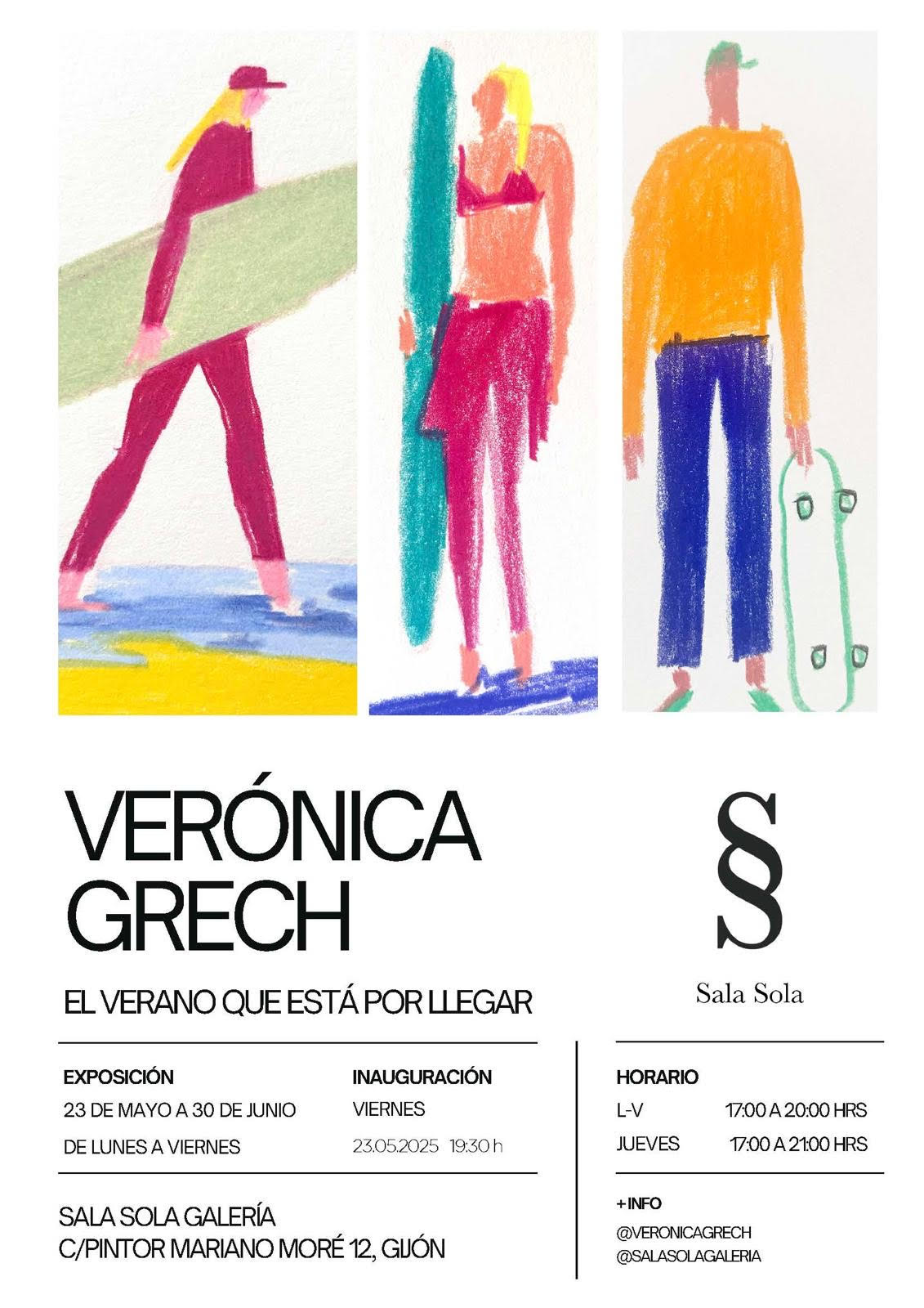 La Galería Sala Sola acoge desde este viernes, y hasta el próximo 30 de junio, la exposición ‘El verano que está por llegar’, una colección de obras firmadas por la artista Verónica Grech que celebran dos deportes profundamente arraigados en Asturias: el skate y el surf. Esta muestra busca explorar y destacar la relación entre el arte y la identidad deportiva, a través de trazos vibrantes y expresivos que reflejan la energía y el espíritu de estas disciplinas. La inauguración será a las 19.30 horas, e incluirá la actuación de un DJ. Más información aquí.