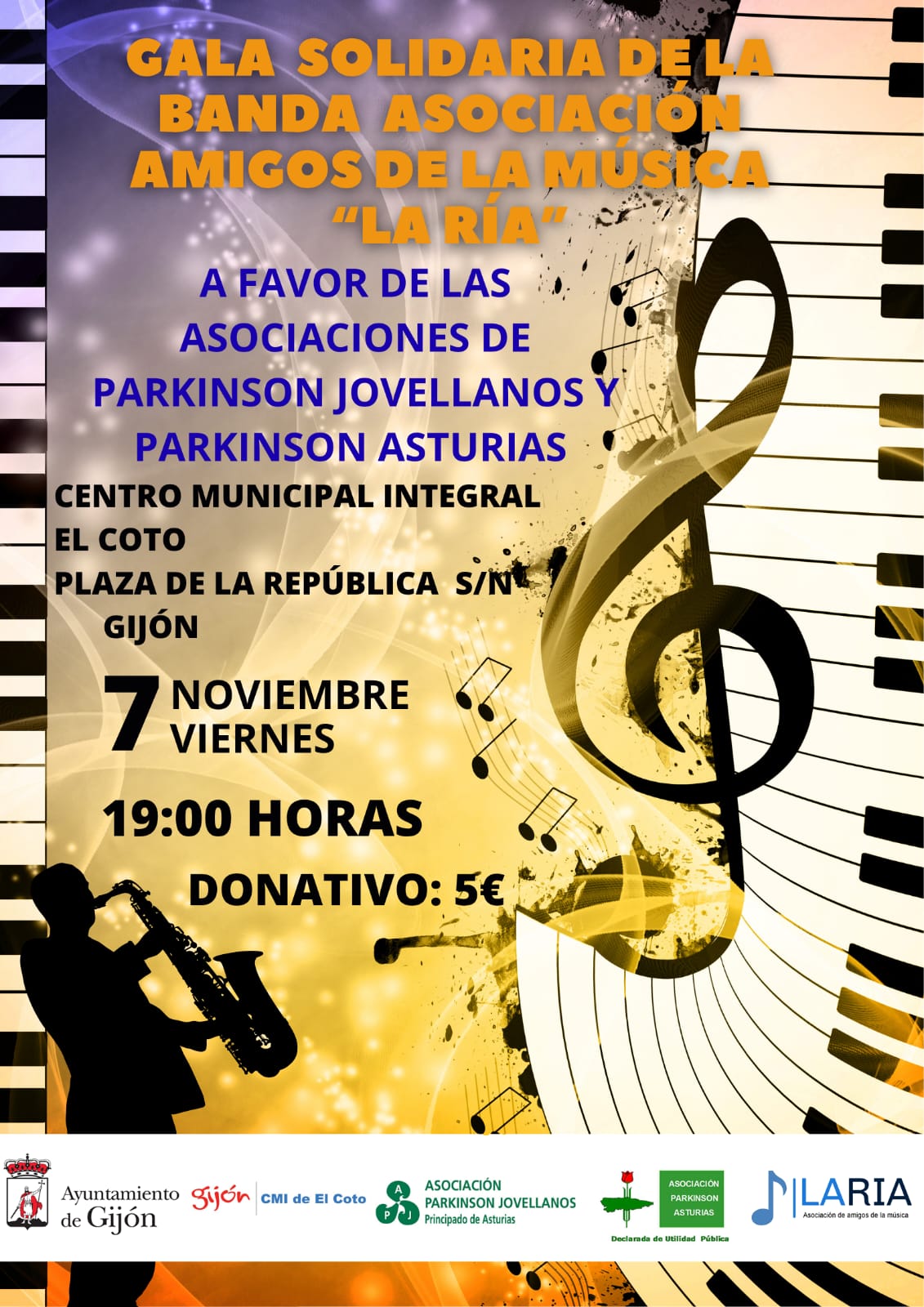 El Centro Municipal Integrado del barrio de El Coto, en Gijón, albergará este viernes, desde las 19 horas, un concierto benéfico a cargo de la Asociación de Amigos de la Música ‘La Ría’, organizado con el fin de apoyar la labor tanto de la Asociación de Parkinson ‘Jovellanos’, como de su homóloga de Asturias. El espectáculo estará abierto a todos los públicos, y sólo se pedirá a cambio un donativo de cinco euros; toda la recaudación se entregará a ambas entidades.