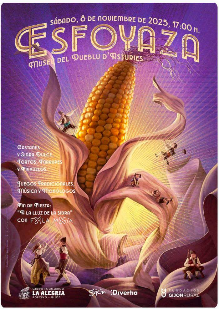 El otoño trae la época de la esfoyaza, palabra que hace referencia al deshoje de las mazorcas del maíz. En esta ocasión, llega al Muséu del Pueblu d’Asturies, y vuelve acompañada de música, gastronomía, juegos y monólogos, en una actividad organizada por el Grupo Folclórico ‘La Alegría’ de Porceyo, y con la colaboración de Divertía de la Fundación Gijón Rural. Una ocasión para disfrutar de la tradición asturiana y visitar en el museo la exposición fotográfica ‘Tierra de maíz. La presencia del maíz en la fotografía asturiana, 1880-1990’.