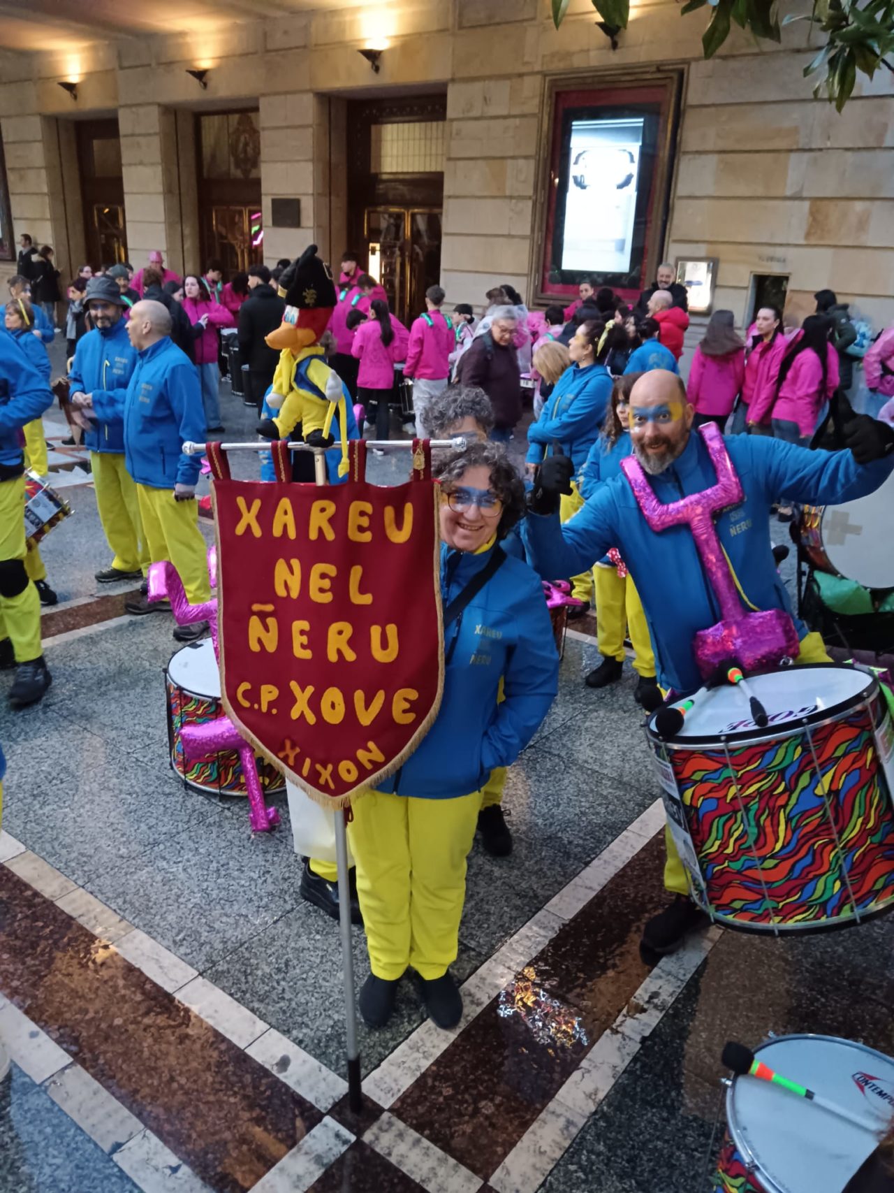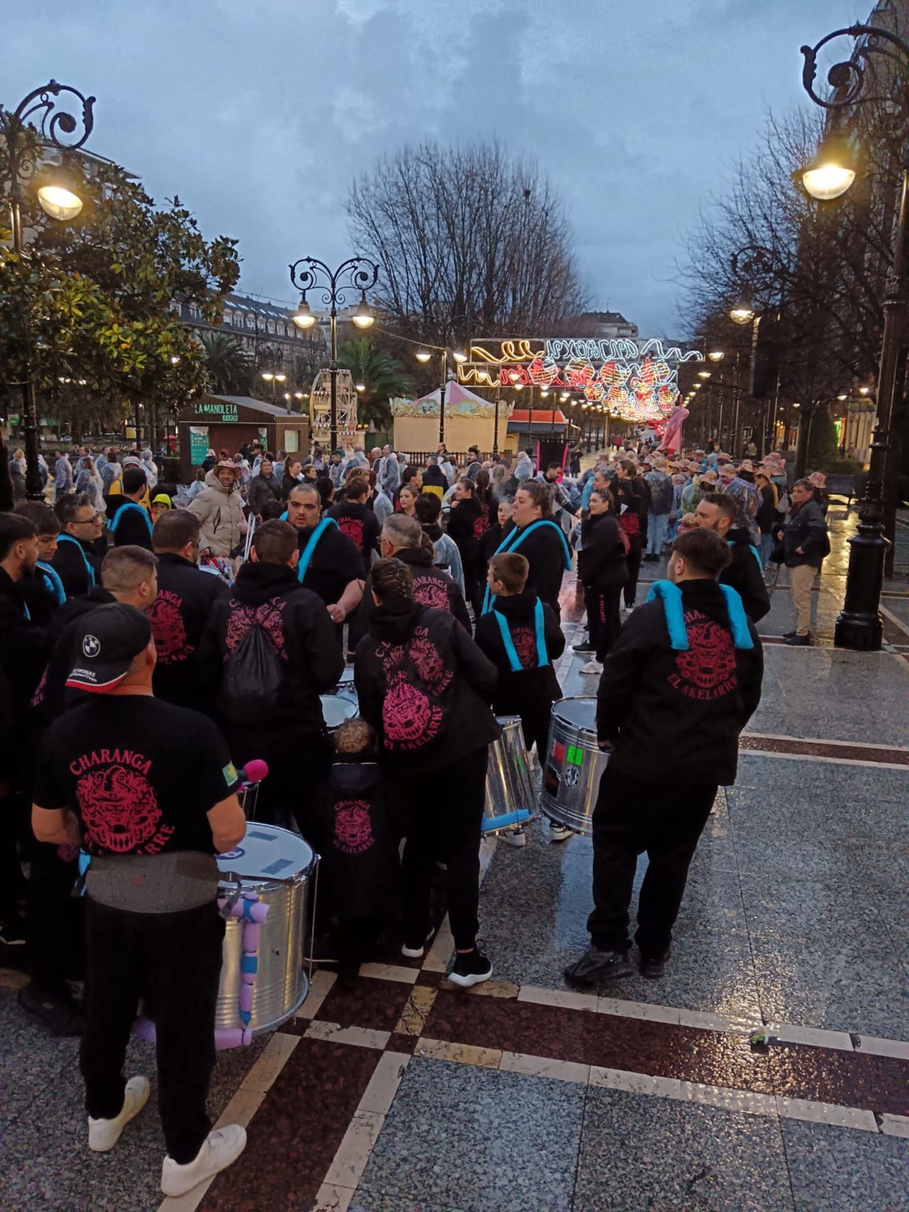 No hubo lluvia ni viento que detuviera el primer pasacalles charanguero de este Antroxu 2026, que amenaza con estar pasado por agua. Con un nuevo recorrido desde el —Paseo de Begoña, calle Covadonga y San Bernardo hasta la Plaza Mayor— las catorce formaciones descargaron nervios en su primera actuación. Los Acoplaos, Folixa pa Toos, Medusamba, La Última y Marchamos, Ye lo que Hay, Perdíos de los Nervios, El Akelarre, Mazcaraos, Los Restallones, Los Gijonudos, Los Tardones, Kop’a Vino, Xaréu nel Ñeru y Os Brasileiros do Xixón lo dieron todo ante un público adornado con paraguas y chubasqueros.