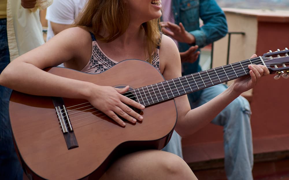 Una artista toca la guitarra. / PSOE de Gijón/Xixón