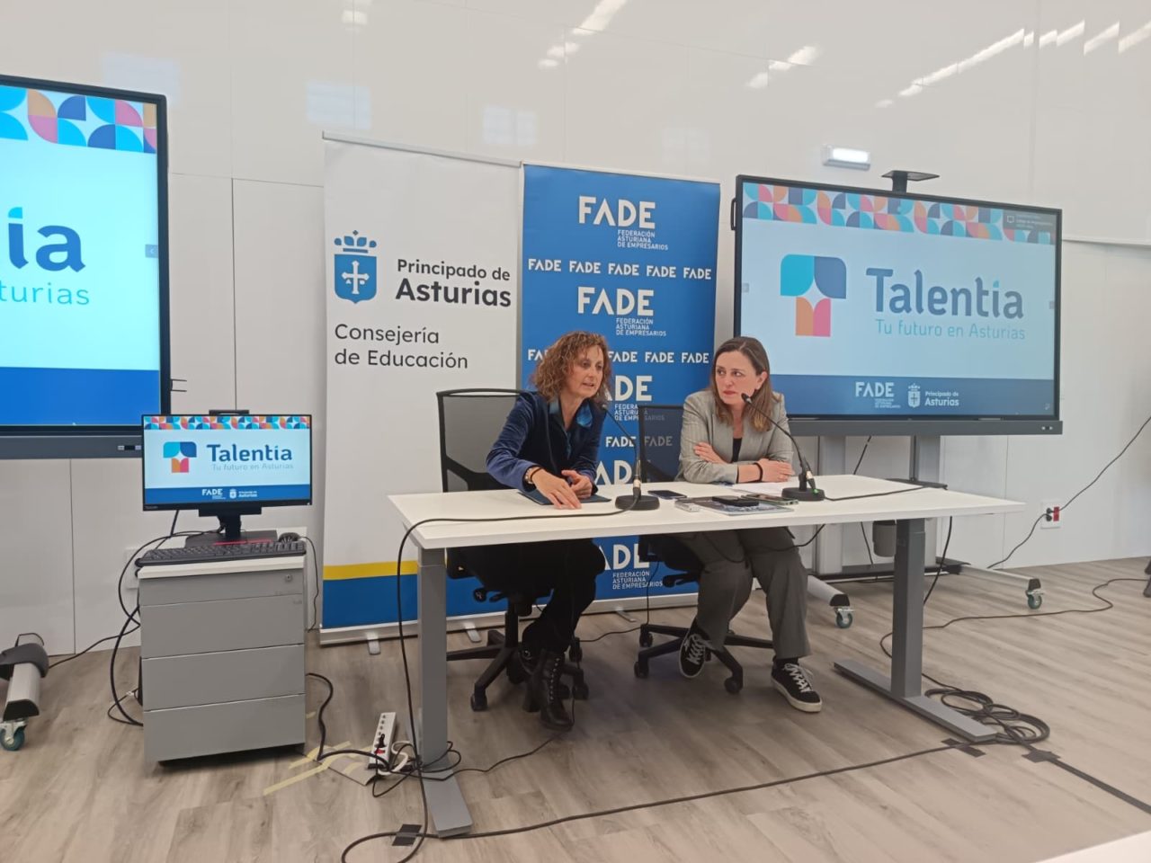LABoral Centro de Arte y Creación Industrial va a convertirse el miércoles en una gran feria de orientación profesional. El espacio gijonés va a acoger Talentia, una iniciativa de la Federación Asturiana de Empresarios (FADE) y la Consejería de Educación que busca ofrecer «opciones de futuro a nuestros jóvenes y solucionar también la falta de relevo generacional en nuestras empresas», apuntaba en la presentación, celebrada esta mañana en el Centro Integrado de Formación Profesional (CIFP) La Laboral, la presidenta de la patronal, María Calvo. «Acercar a empresas y centros de formación a nuestro alumnado y demandantes de empleo para que puedan conocer cuál es la demanda, dónde pueden conseguir formarse para esa demanda», apuntaba previamente la consejera Eva Ledo, que especificaba que esta iniciativa no sólo está destinada «al alumnado que se está formando en su etapa inicial, sino también a aquellos demandantes de empleo que han visto cómo su sector ha sufrido una modificación y necesitan una actualización».