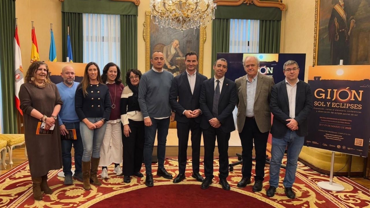 El próximo 12 de agosto de 2026 promete ser un día difícil de olvidar… O, mejor dicho, una noche. Por primera vez desde el muy distante año 1905, Gijón será testigo del eclipse total programado para entonces, un oscurecimiento absoluto del firmamento que, no es difícil augurarlo, será presenciado por miles de personas en distintos puntos de la ciudad. Y precisamente con el fin de anticiparse a esa ficha y tenerlo todo a punto para entonces, el Ayuntamiento ha convocado una mesa de trabajo específica a través de su Concejalía de Relaciones Institucionales y Juventud, diseñada para concretar y, próximamente, divulgar toda aquella información útil referente al esperado fenómeno. Una acción que servirá de antesala a las jornadas ‘Gijón: sol y eclipses’, que se celebrarán los días 28 y 29 de marzo en la Escuela de la Marina Civil, y que fueron presentadas ayer miércoles, en la Casa Consistorial gijonesa.