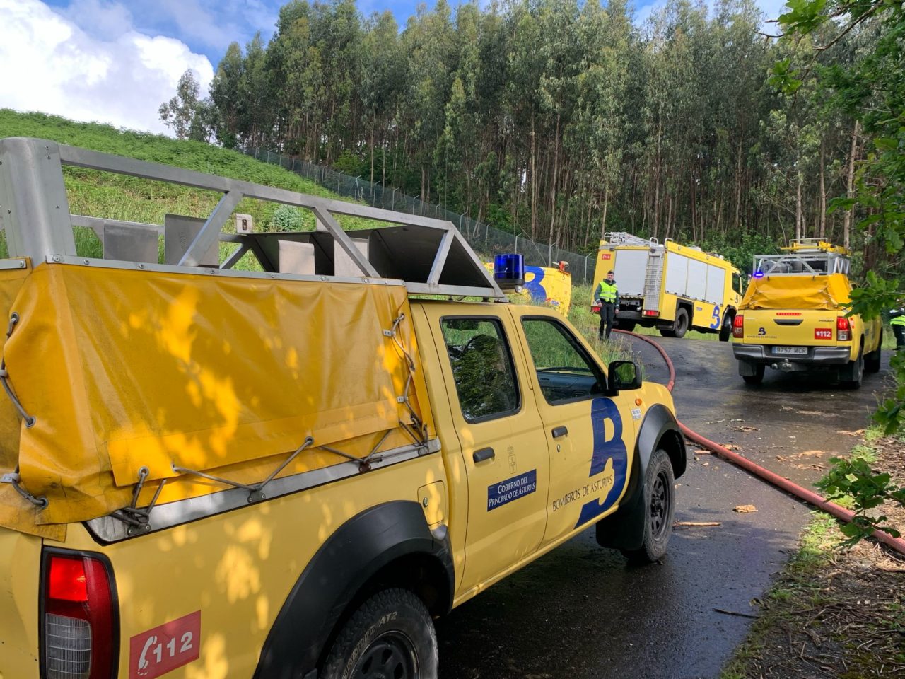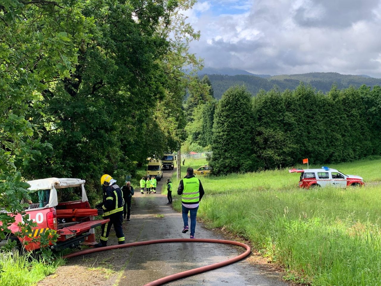 Y es que, en una emergencia de la envergadura de la imaginada para este simulacro, no basta con los recursos terrestres. Así, a fin de proceder al rápido traslado de los posibles heridos a dependencias hospitalarias, el Servicio de Bomberos de Asturias desplegó su propia aeronave medicalizada, reforzada por su equivalente operada por la Guardia Civil. Ahora bien, el grueso de las operaciones se realizaron a nivel del suelo, entre los ‘restos’ del aparato siniestrado. Hasta esa ‘zona cero’ se desplazaron efectivos del SEPA procedentes de tres parques distintos, embarcados en autobombas, furgones multisocorro y vehículos de toda índole. Mucho más tétrica, en el marco de la ficción, fue la presencia del personal del Instituto de Medicina Legal y de la Policía Judicial de la Banemérita, llamados para la identificación de los cadáveres. Paralelamente, y ante el más que previsible aluvión de llamadas por parte de allegados, se puso en funcionamiento la figura de la Persona de Contacto con las Víctimas y Familiares (PECO), amén de contar con el Equipo de Respuesta Inmediata en Emergencias (ERIE) psicosocial de Cruz Roja. En fin, un masivo despliegue que, dos horas después, había alcanzado sus objetivos.