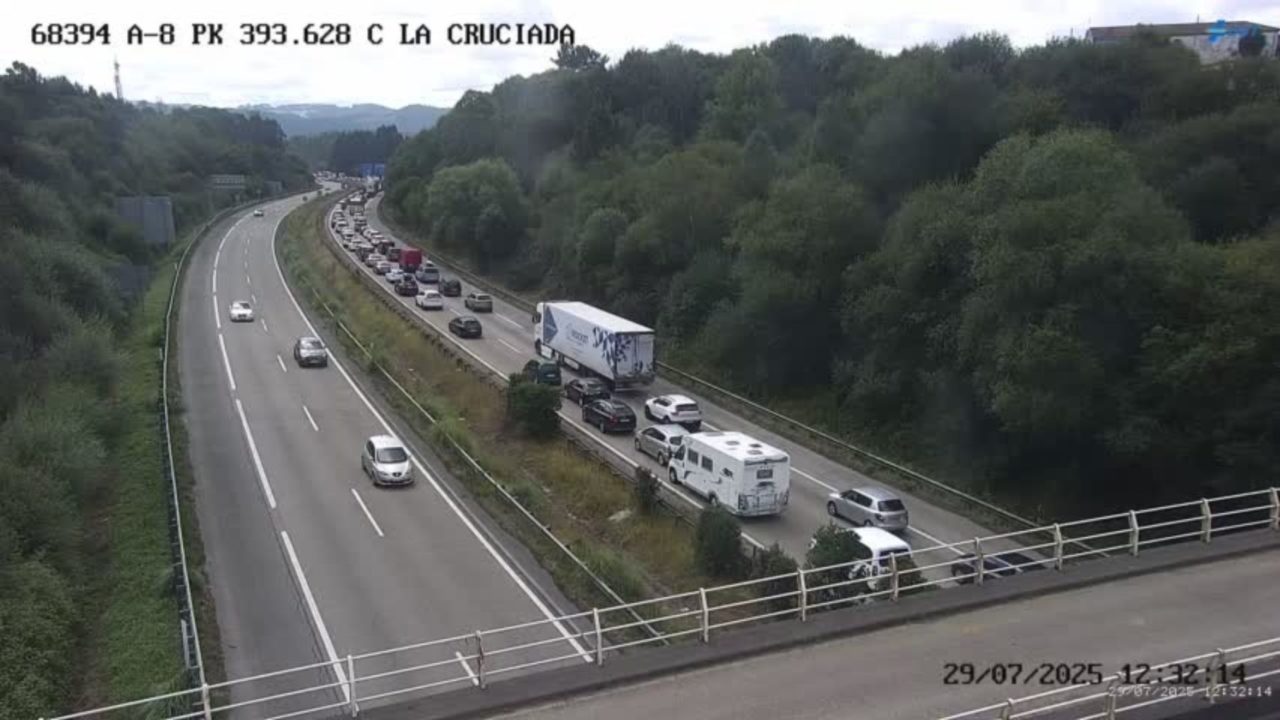 Mañana de martes agitada en la A-8. A las 10.50 horas un camión de transporte de áridos que transitaba por dicha vía en dirección a Irún ha basculado su carga accidentalmente y ha cubierto con ella los tres carriles a la altura del punto kilométrico 391,3, en el cruce de Serín, impidiendo totalmente el tránsito. La Guardia Civil se ha movilizado de inmediato, y sus patrullas han redirigido la circulación por el arcén, pero ha sido imposible evitar unas retenciones que, en su momento cumbre, se han prolongado a lo largo de siete kilómetros. Afortunadamente, no ha habido que lamentar ningún daño personal, aunque la lentitud del flujo de vehículos continúa.