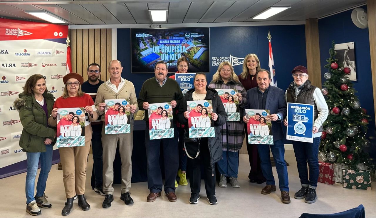 El Real Grupo de Cultura Covadonga presentó este martes una nueva edición de la Operación Kilo – Somos Grupo Solidario, una de las iniciativas sociales más arraigadas en la entidad y un ejemplo del compromiso del Club con las familias asturianas que atraviesan situaciones de especial vulnerabilidad. El acto estuvo presidido por Tasio del Reguero, miembro de la Junta Directiva y presidente de la Comisión Social, acompañado por Pepa Cañadas, vicepresidenta de la Fundación Banco de Alimentos de Asturias; Juan José Cima, secretario de la entidad; y Paco Prado, uno de sus patronos.