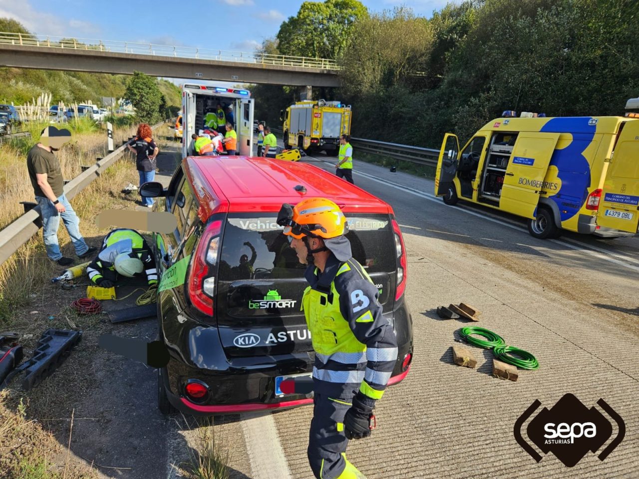 Una llamada a las 17.35 horas al Centro de Coordinación de Emergencias del 112 Asturias informaba «que había un motorista caído y que estaba debajo de un coche», por lo que movilizó a tres efectivos de bomberos de la base de Avilés con el furgón multisocorro y el vehículo primera salida, además de a la Guardia Civil y al Servicio de Asistencia Médica Urgente (SAMU). Una vez en el lugar del accidente, se encontraron al coche en el carril izquierdo de la calzada con el conductor de la moto atrapado bajo a él, previsiblemente tras una caída.