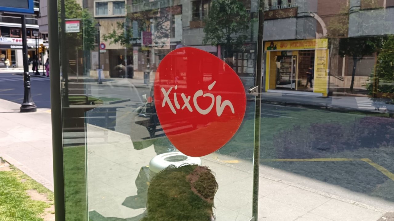 Marquesina de EMTUSA; se aprecia el nombre de la ciudad escrito en asturiano. / miGijón