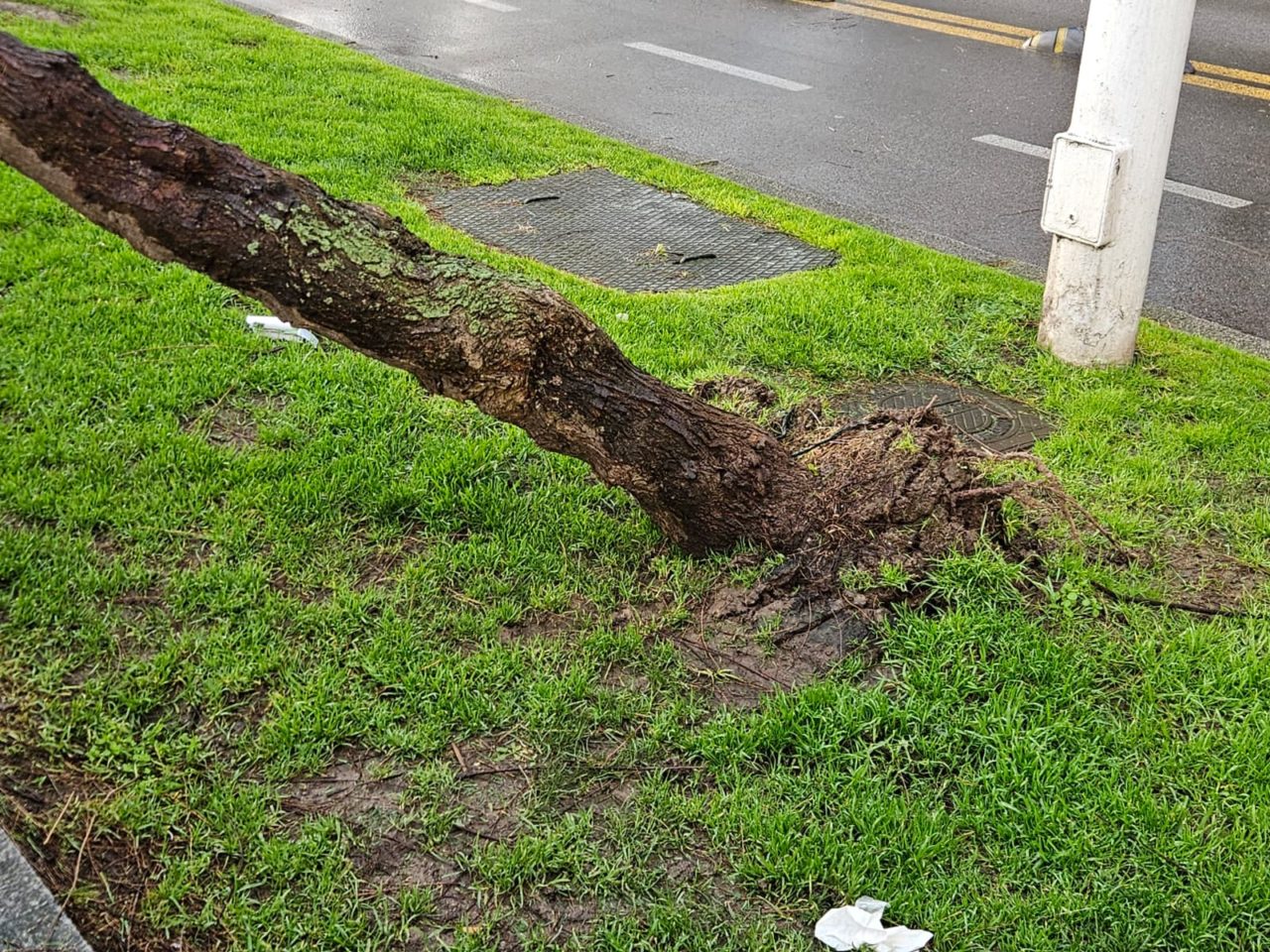 El ejemplar, situado entre la escalera 6 y la calle Eladio Carreño, se vino abajo sobre el murete que delimita la zona peatonal de la ‘verde’, sin causan daños ni materiales, ni humanos; se evaluará si es viable recolocarlo, o si es mejor plantar otro árbol similar