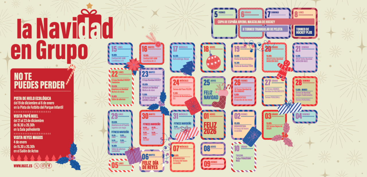 En el ámbito social, una de las citas más destacadas será la Gala de Entrega de Becas de Estudio RGCC 2025, que tendrá lugar el 17 de diciembre, un día señalado para reconocer los méritos académicos y deportivos de los jóvenes del Club.