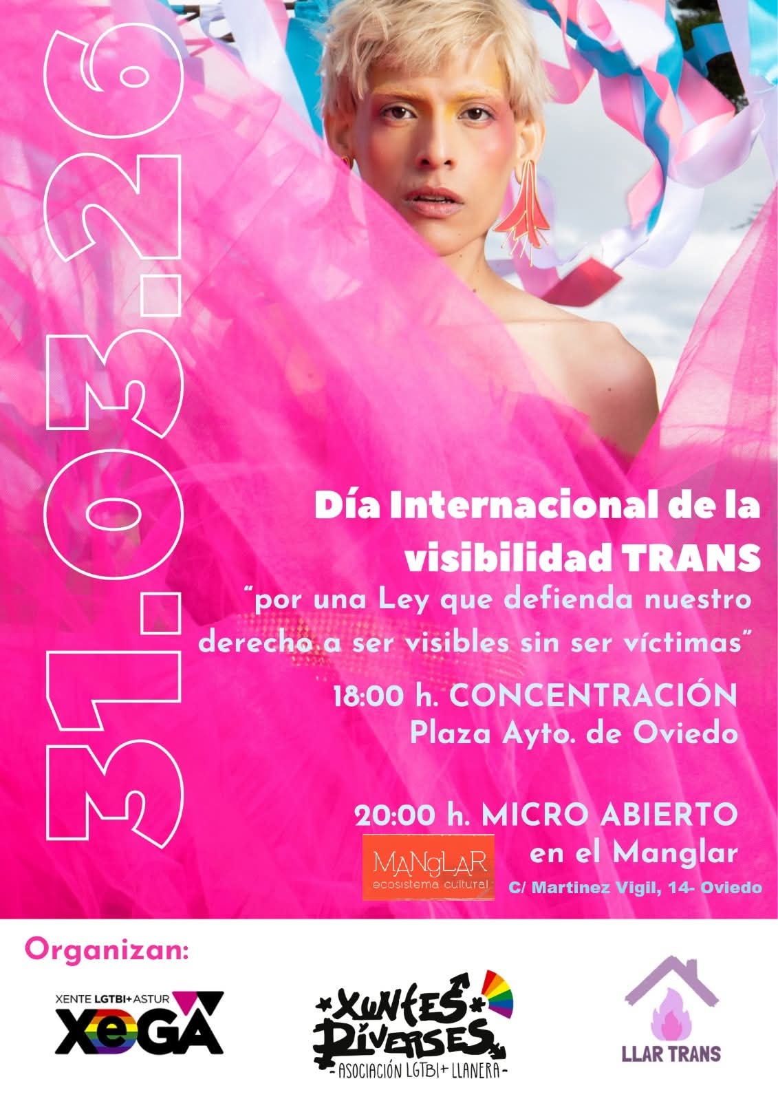 No existe problema que afecte al ser humano, de una u otra manera, que pueda resumirse utilizando una única palabra. Sí, cierto, los términos aislados pueden ser útiles somo síntesis imprecisa, pero… Pensemos, por ejemplo, en el término «igualdad». Por sí solo, abarca luchas tan dispares como las que llevan años librando mujeres, migrantes, determinadas minorías religiosas y culturales… Y, también, y muy especialmente, las personas transexuales, todavía hoy víctimas de frecuentes ejercicios de discriminación, falta de derechos e, incluso, violencia. Así quedó tristemente demostrado el pasado 22 de marzo, en La Bañeza, escenario de una agresión grupal contra una joven de dicho colectivo que, de momento, se ha saldado con cinco detenciones. Esa es la razón por la que mañana martes, 31 de marzo y, a la sazón, Día Internacionalidad de la Visibilidad Trans, las entidades XEGA, Xuntes y Diverses y Llar Trans unirán sus fuerzas en una doble acción reivindicativa que se celebrará en Oviedo, en horario de tarde.