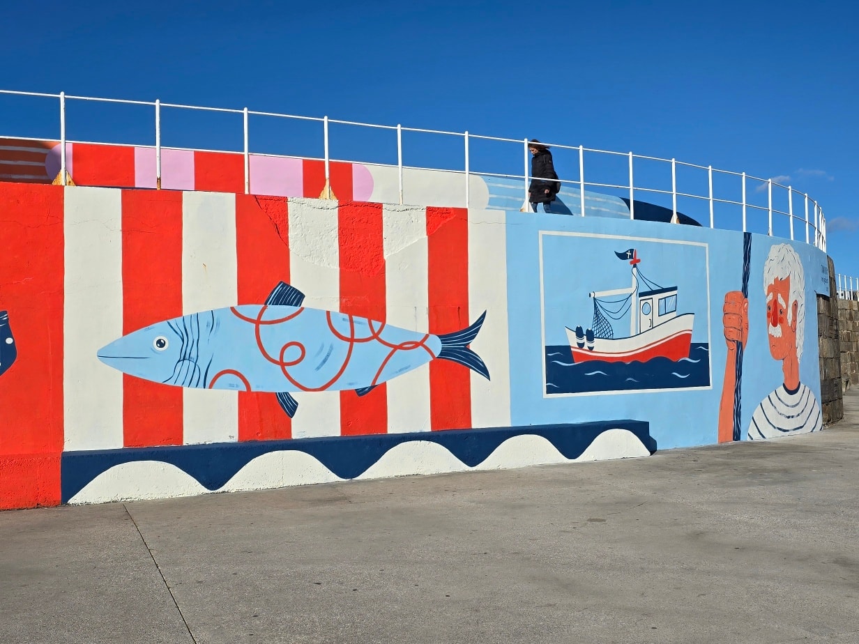 El dique Santa Catalina luce ya su nuevo mural, obra de Vera Galindo y Juan Rubio, ganadores del concurso con jurado convocado este verano para adecentar e integrar visualmente este enclave clave del frente marítimo gijonés. La intervención artística, presentada hoy en una visita guiada por sus autores, supone un paso más en la apuesta de la Autoridad Portuaria por abrir el puerto a la ciudadanía y reforzar su identidad marinera.